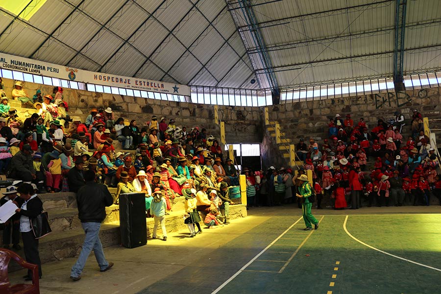 Lo que nadie podría haber predicho: En lugar de los 300 visitantes registrados inicialmente, más de 1500 estudiantes y profesores asistieron a nuestro congreso. La noche anterior al evento, todos colaboramos para aumentar la cantidad de paquetes de alimentos y materiales informativos. Sin embargo, encontrar un lugar parecía mucho más difícil: las salas simplemente no serían lo suficientemente grandes, y una asistencia tan grande requería una ubicación diferente. Una rápida llamada telefónica al alcalde de Lampa resolvió el problema: «¡Usen nuestro estadio, lo prepararemos todo! ¡Estamos encantados con el gran interés y haremos todo lo posible!». Y así se hizo: el estadio quedó perfecto y las sesiones de capacitación docente pudieron realizarse en las salas de seminarios adyacentes.