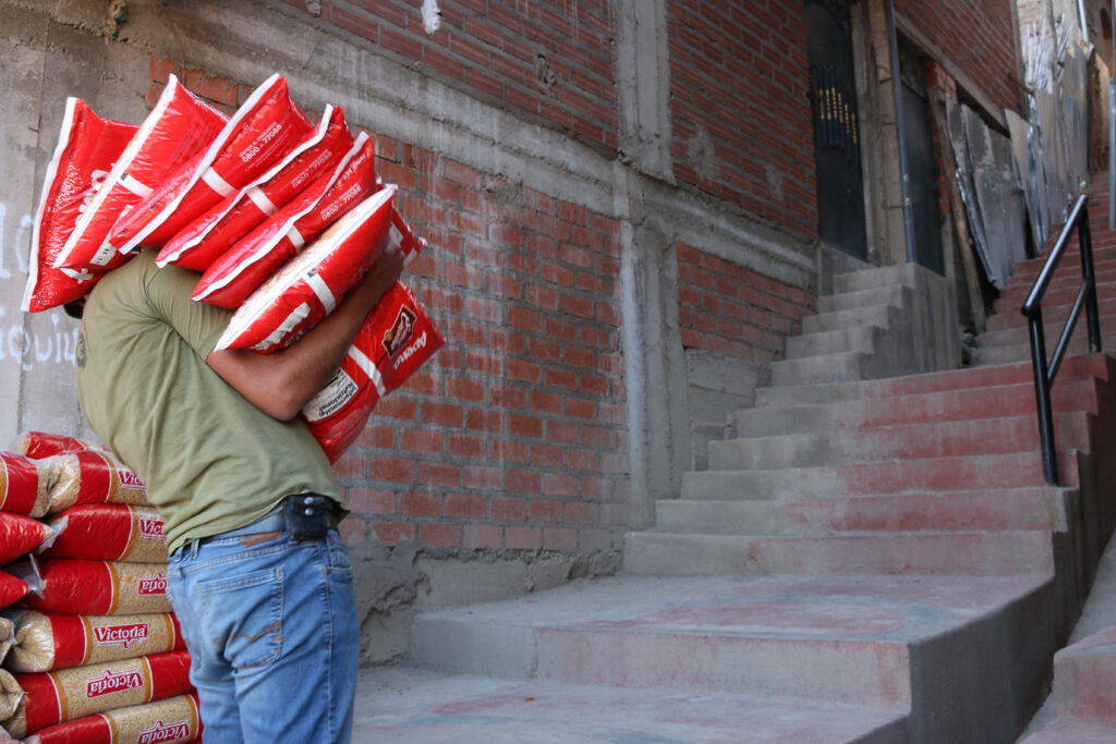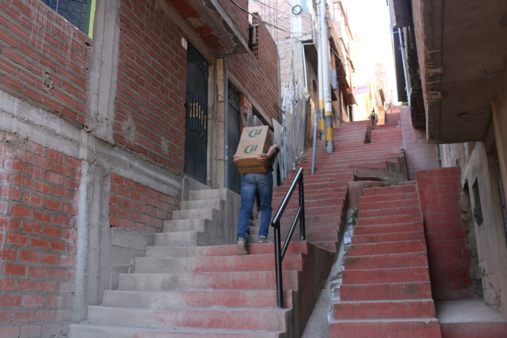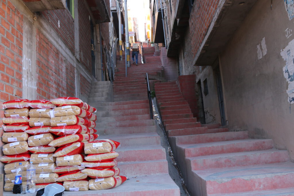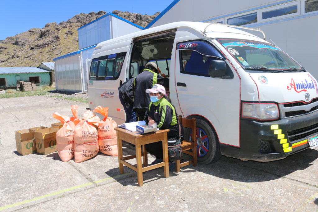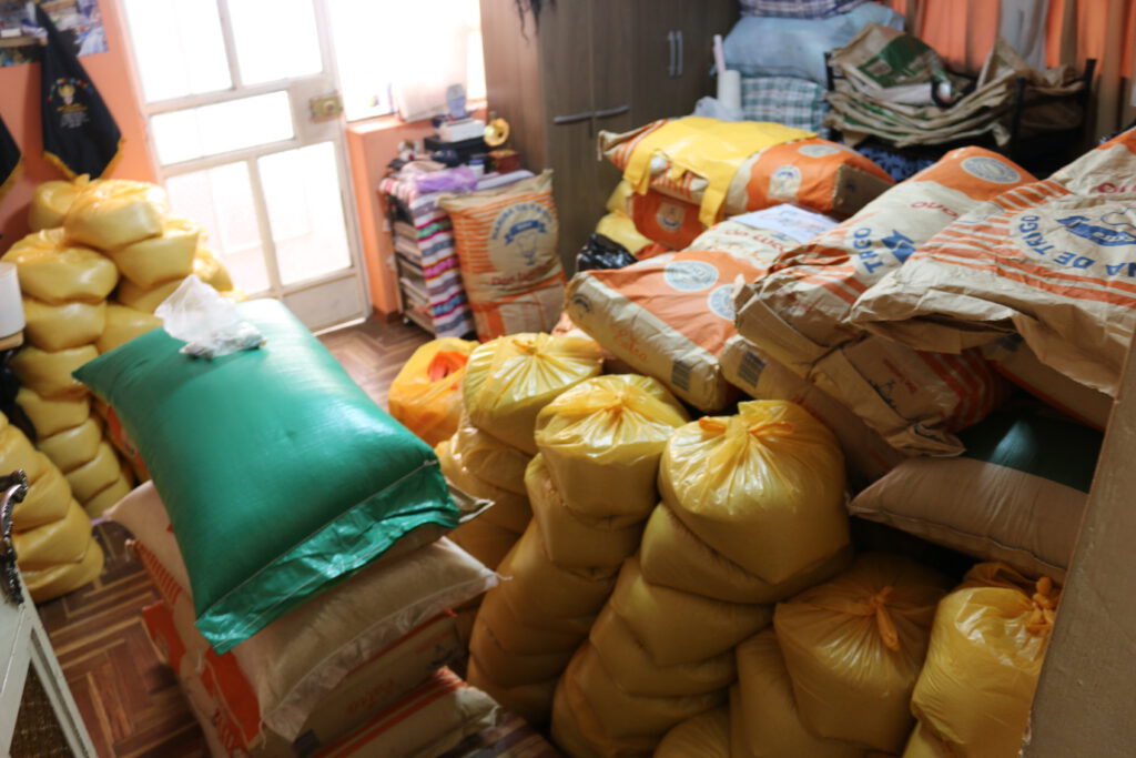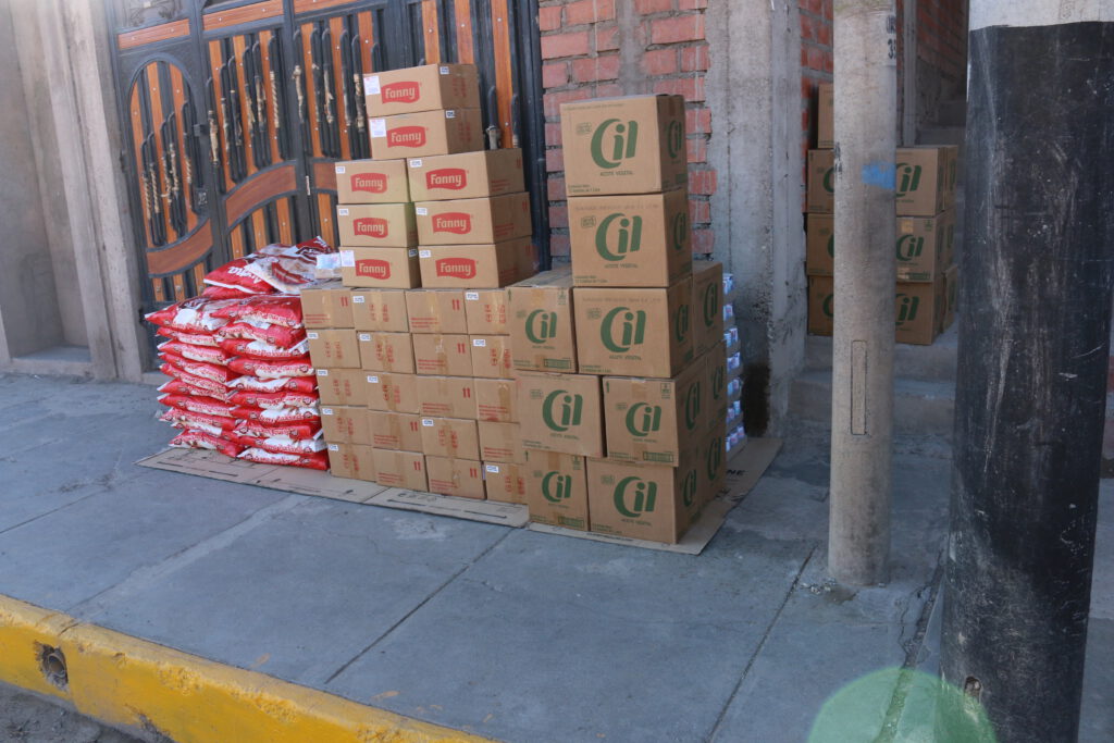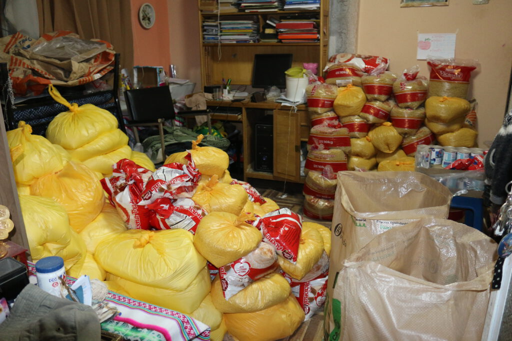 El 29 de octubre, algunos víveres volvieron a estar disponibles en la ciudad de Puno, incluso en grandes cantidades. Y las carreteras estaban despejadas para el transporte. Nuestros socios locales reaccionaron con rapidez: junto con los directores de las escuelas, determinaron el tamaño de las familias cuyos hijos asisten a nuestras escuelas asociadas. Calcularon las raciones necesarias para los suministros de emergencia. Dado que la gente en todas partes está sufriendo, los alimentos tuvieron que almacenarse de forma segura y transportarse directamente desde los mayoristas y los mercados a alojamientos privados. Allí, dividieron las raciones, las etiquetaron, las cargaron y las entregaron a las escuelas. Una tarea titánica.