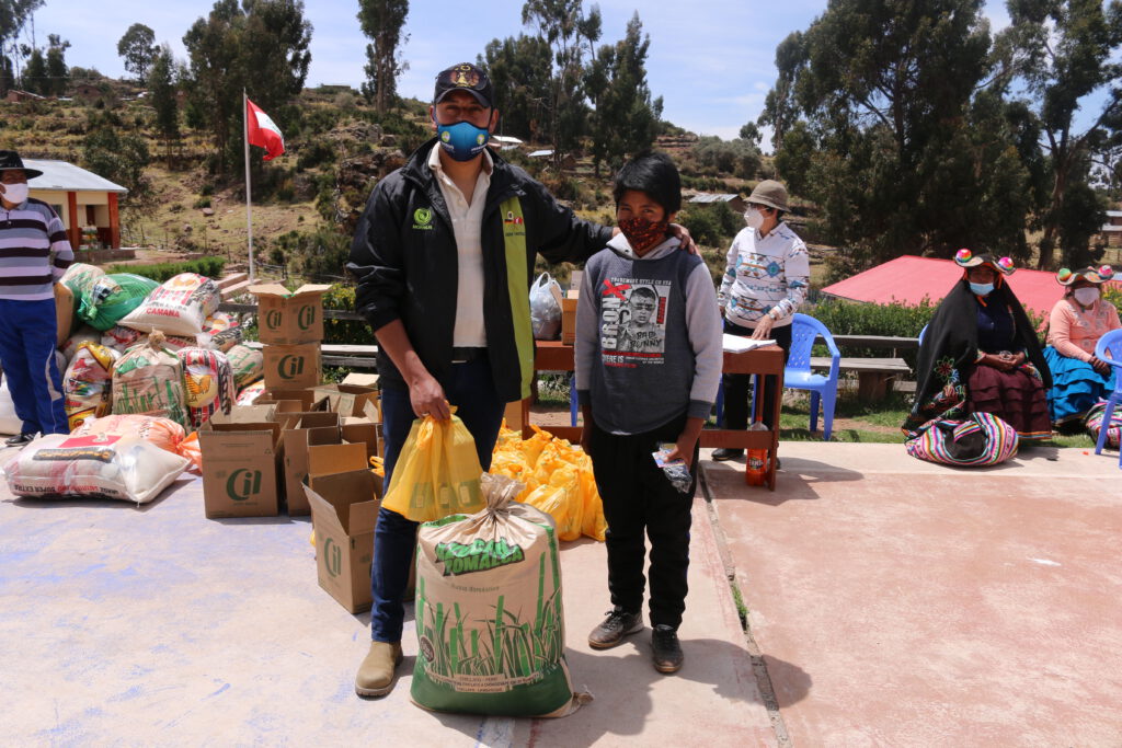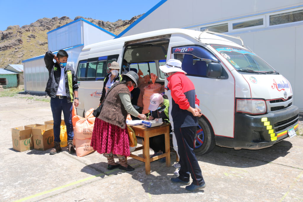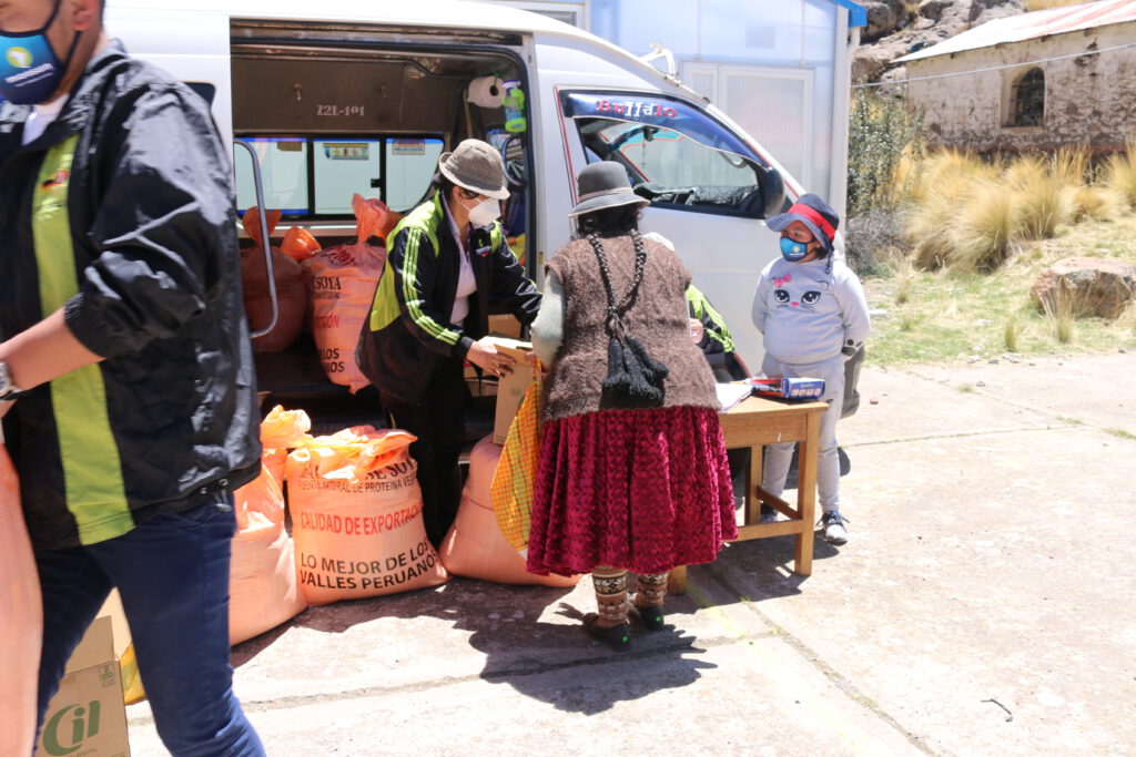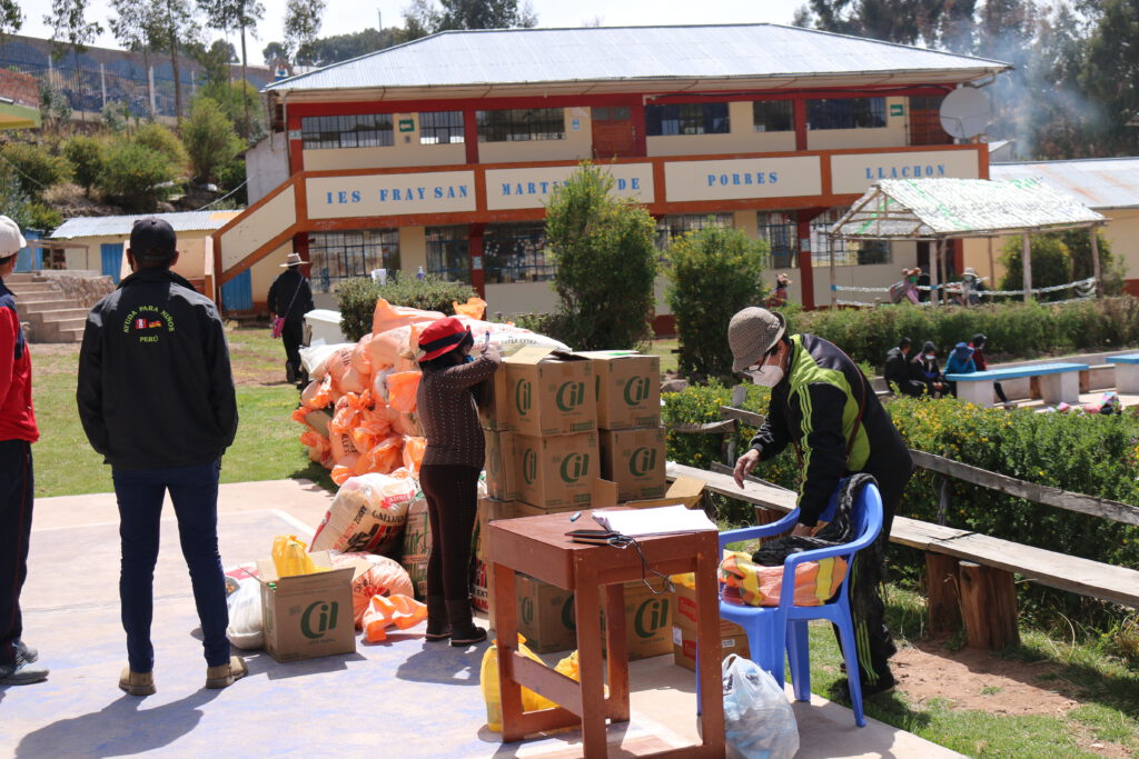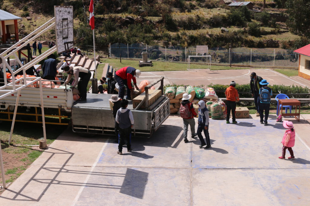 La región de Puno se vio especialmente afectada. A diferencia de otras regiones, el confinamiento, que comenzó el 20 de marzo, se mantuvo hasta mediados de octubre. Conducir desde Puno hasta Rivera Coilata o Llachón era imposible. El contacto con el director en Llachón y un profesor en Rivera solo era posible por teléfono. La situación para las familias de los dos pueblos de nuestras escuelas asociadas era difícil, ya que apenas había nada que comprar aparte de sus propios productos, y el comercio estaba severamente restringido. Los precios de los alimentos subieron tan drásticamente que muchas familias solo podían permitirse comprar una cantidad mínima o nada. Este fenómeno no es infrecuente: incluso cuando muchas personas reciben papas o carne, por ejemplo, sufren graves deficiencias debido a la falta de vitaminas y minerales. A 4000 metros de altitud, no crece fruta, y no todos en el pueblo tienen leche, huevos o carne de sus propios animales.